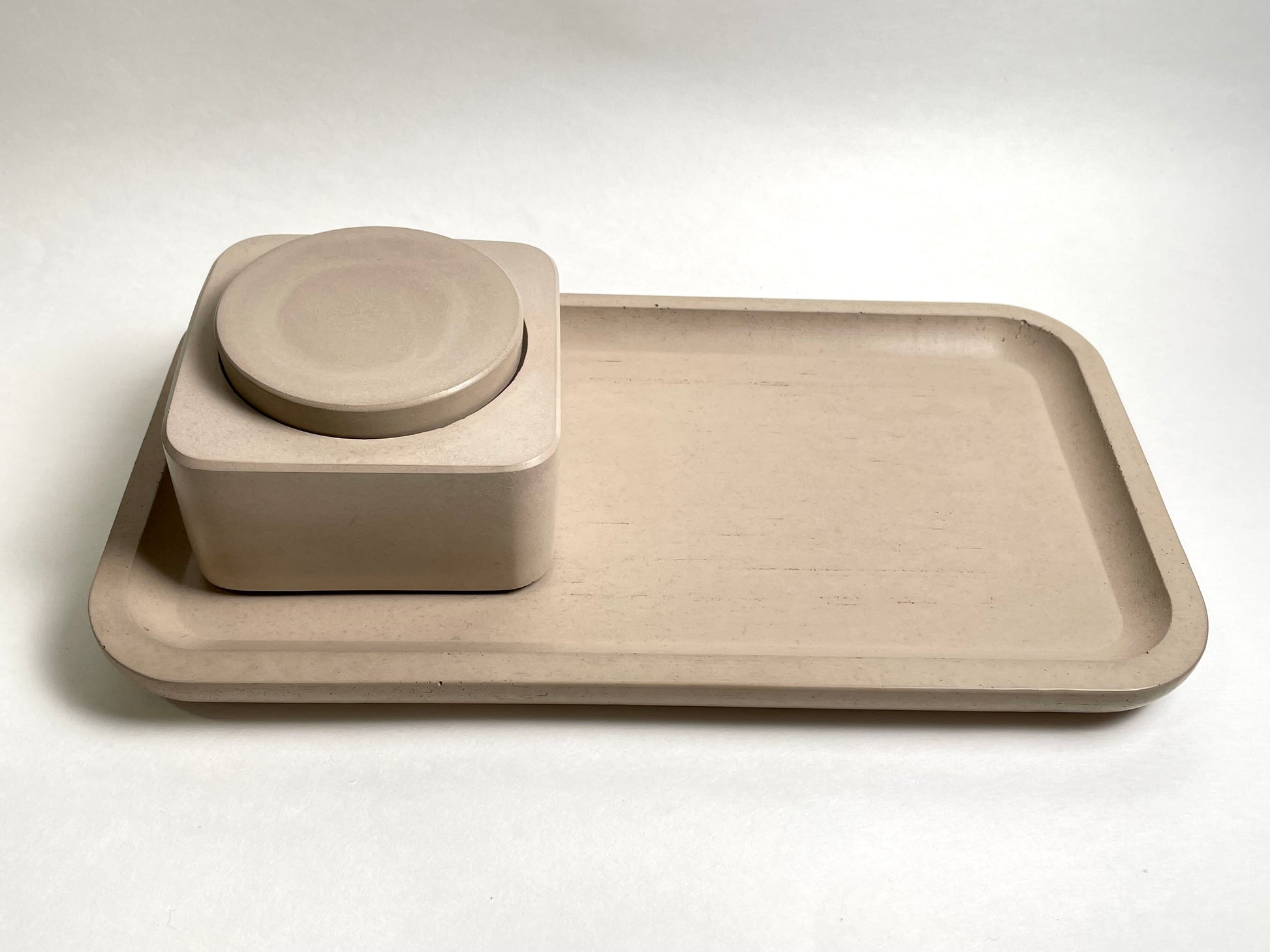 Our brand new handcrafted concrete serving tray has minimal wood-like texture, gently curved edges, and a timeless, rounded silhouette.